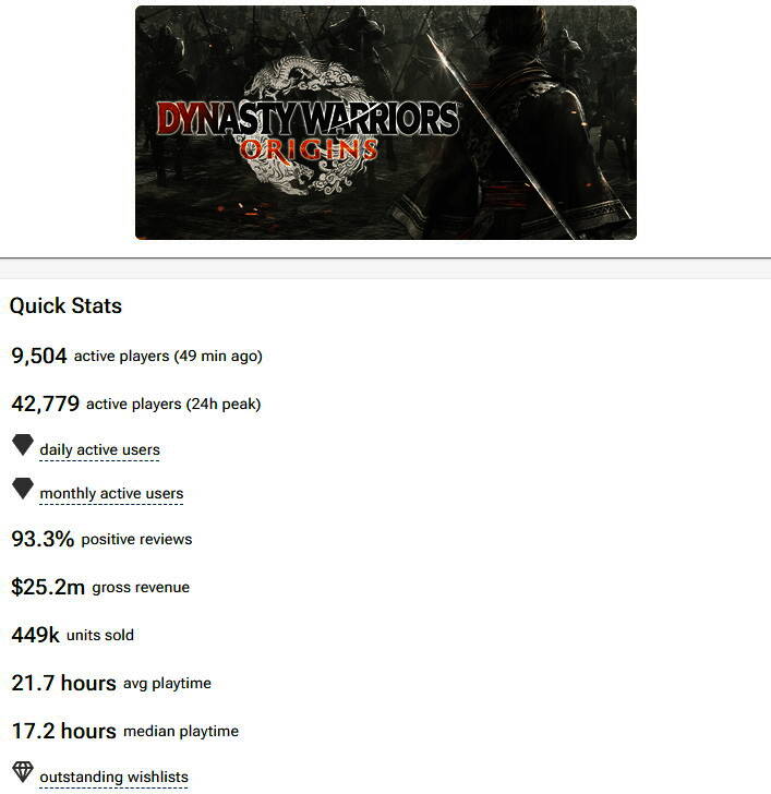 《真三国无双:起源》在Steam日本畅销榜上持续排名第一,同时在全球排行榜上也名列前茅。此外据VG Insights数据显示,《起源》在Steam上预估销量超44万份,销售额达2520万美元。