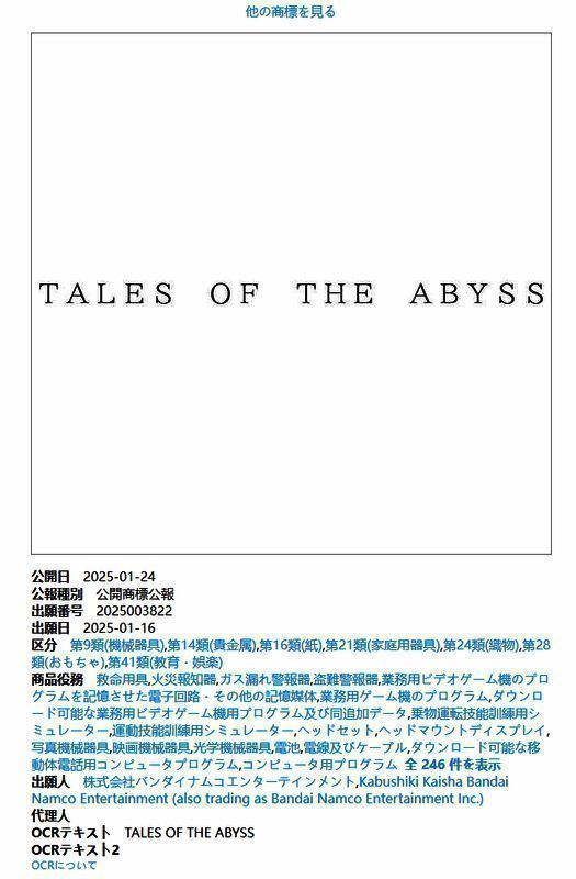 近日,万代南梦宫为《深渊传说》注册了新商标,申请日期2025年为1月16日,公开日期为2025年1月24日。此前,在《传说》系列30周年纪念期间,万代南梦宫曾表示过除了《圣恩传说F:复刻版》外,他们将推出更多《传说》系列复刻版游戏,该注册商标可能是为了《深渊传说》复刻版作准备。