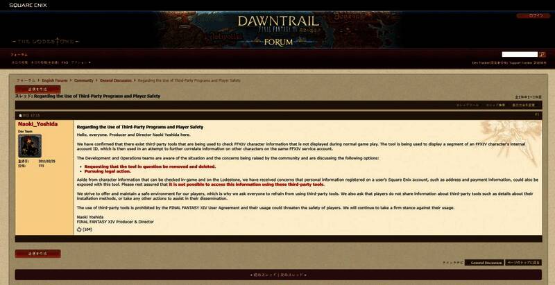不过吉田直树还是呼吁玩家们不要使用第三方插件以及不要分享有关第三方插件的信息,或任何其他会协助传播这些插件的行为,因为SE方面和运营团队正在讨论移除有问题插件及采取法律措施的方案。