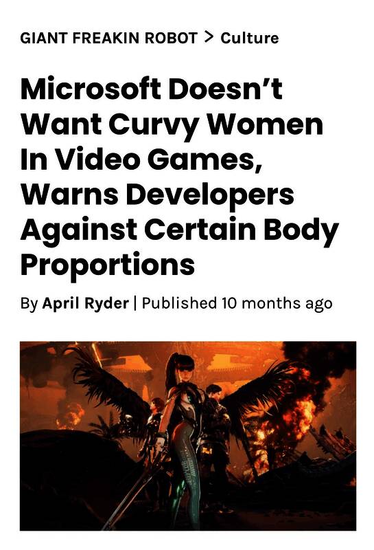 据之前的报道,微软曾发布角色设计指南,警告开发者不要在电子游戏中出现某些身材比例的女性。