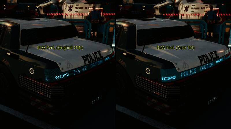 英伟达通过新的Transformer神经网络更新了DLSS技术,这一更新适用于任何RTX家族。根据油管频道RandomGaminginHD的测试,相比CNN,新的Transformer模型让游戏图像更加清晰。这一点在《赛博朋克2077》警车上的文字表现最为明显,而之前的CNN模型展示的文字比较扭曲。