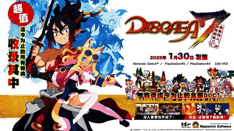 囊括游戏本篇、全部DLC并追加新剧请、新角色的超值游戏套装《魔界战记DISGAEA 7 完整收入,点击就玩》将于2025年1月30日面向亚洲地区发售,登陆Nintendo Switch™ / PlayStation®5/ PlayStation®4平台。