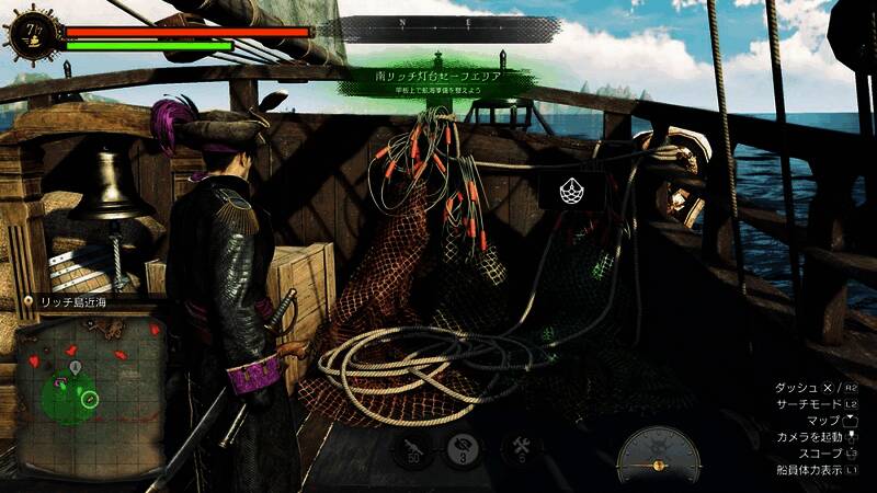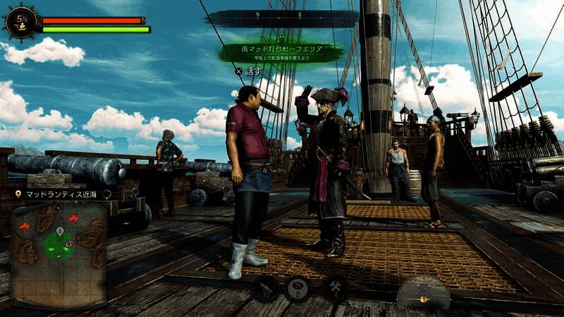 在航海过程中也随时可以在吾朗号的甲板上自由移动。位于安全区时,可以进行航海的准备,比如与召集起来的船员们交流、设置获取鱼或物资的拖网等。