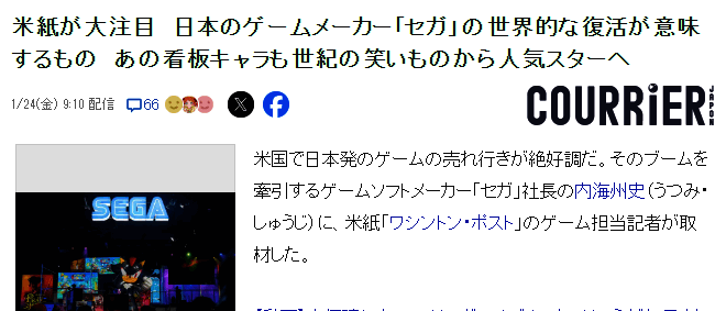 世嘉之于中国玩家,或许更多的印象可能是当年的游戏机,其代言人吉祥物索尼克反而热度一般,只是在彼岸的美国,索尼克的风头经久不衰越来越盛,知名媒体《华盛顿邮报》称赞世嘉正迎来文化复兴,索尼克影响力比肩迪士尼公主。