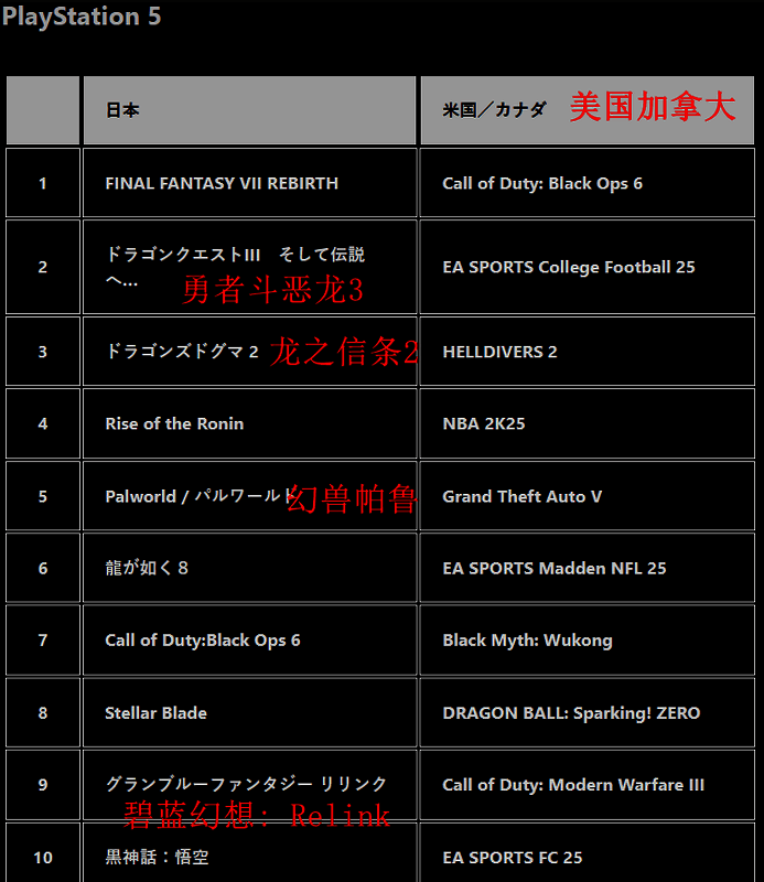 ·本次的官方统计包含PS5、PS4、PSVR2以及基本游戏免费四大类别: