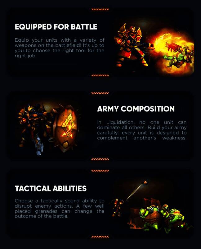Liquidation是一款战术实时战略(RTS)游戏,故事背景设定在一个混合了幻想和科幻元素的宇宙中,支持单人和多人模式。