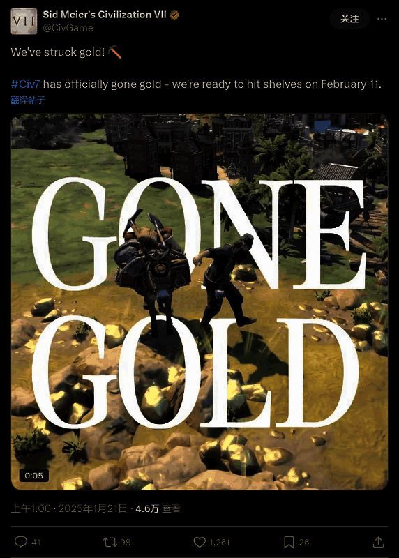 开发商 Firaxis Games 日前在社交媒体上宣布,《文明7》在计划的 2025 年 2 月 11 日发售前已正式进厂压盘。