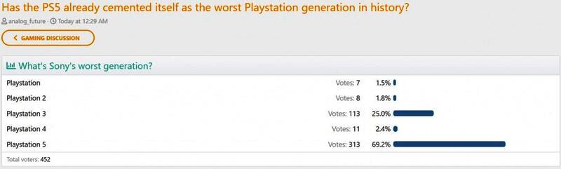 在最活跃的视频游戏论坛之一NeoGAF上,一位用户发布了一项投票,询问粉丝对索尼最差一代游戏机的看法。本世代游戏机PS5获得了将近7成玩家投票,证明在粉丝的眼里PS5确实做得不够好。其次是索尼PS3,得票率25%。