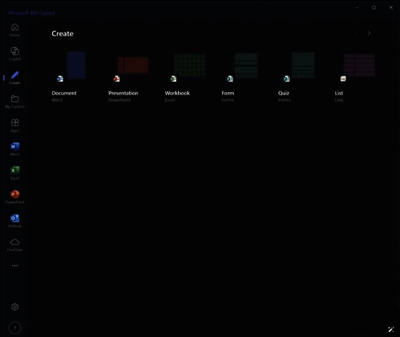 主页下方是 Copilot 按钮,加载 copilot.microsoft.com,并更深入地集成到 Microsoft 365 生态系统中,用户可以要求其在云存储中查找内容并与其交互。