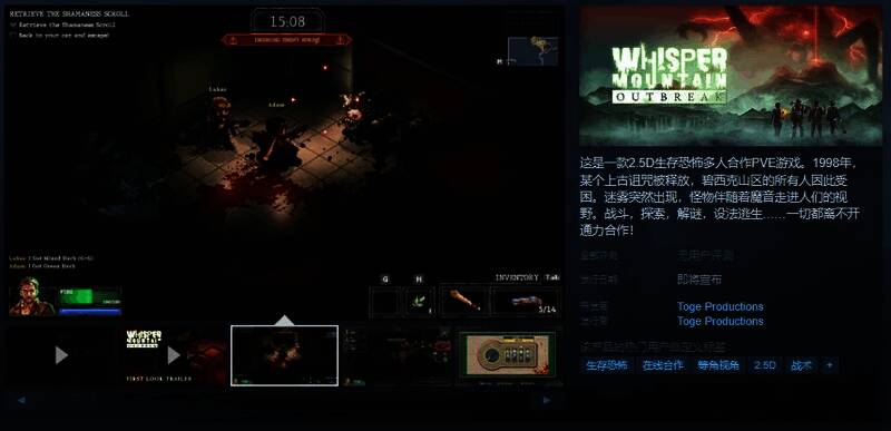 这是一款2.5D生存恐怖多人合作PVE游戏。1998年,某个上古诅咒被释放,碧西克山区的所有人因此受困。迷雾突然出现,怪物伴随着魔音走进人们的视野。战斗,探索,解谜,设法逃生……一切都离不开通力合作!