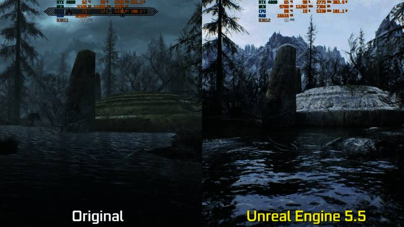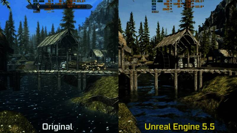 之前有粉丝使用虚幻5.5引擎打造了《上古卷轴5》场景演示,让经典游戏焕发新活力。近日油管主MxBenchmarkPC分享视频,将《上古卷轴5》虚幻5粉丝版与原版进行了对比,展示了粉丝版的画面改进。