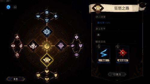 游戏还有天赋树加点与秘术觉醒强化,前者会解锁更多的咒语,丰富卡牌刷新池;后者会增加生命值/热力值上限和增加咒语槽位等不同效果。一方面,玩家每回游戏结束后可以通过局外养成来增强,另一方面,丰富卡组让每局游戏都有一定随机性。