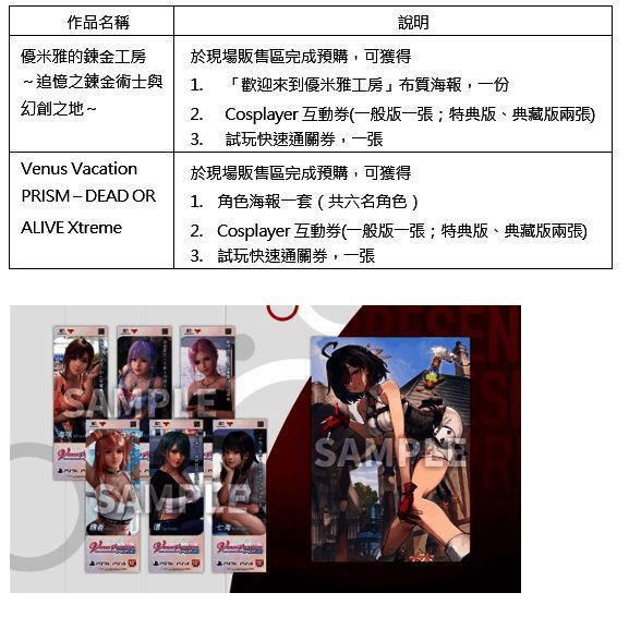 ※于 2025 台北国际电玩展贩卖区的预购好礼『优米雅的炼金工房』的「欢迎来到优米雅工房」布质海报,以及『Venus Vacation PRISM』的角色海报一套六入,将于游戏上市后随货寄出。