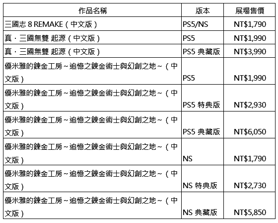 更多的产品信息,请至台湾光荣特库摩粉丝专页: