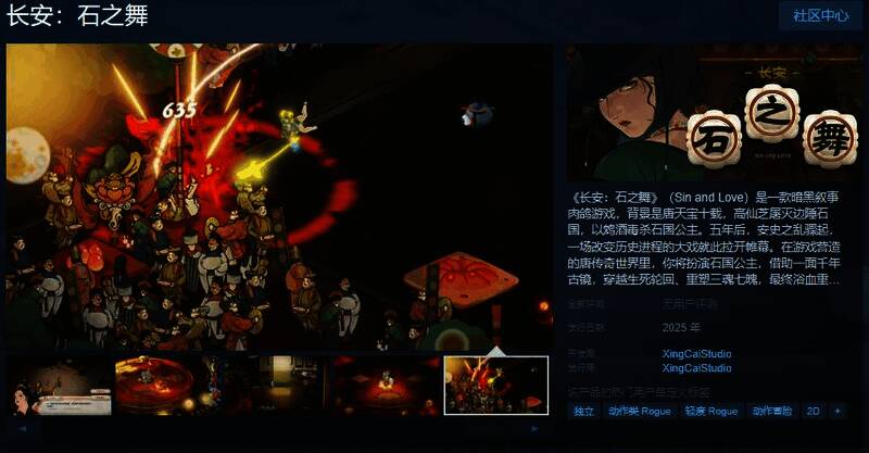 高燃战斗、沉浸剧情,唐风美学,疯批肉鸽,魔性配乐……叙事肉鸽游戏《长安:石之舞》(Sin and Love)如期而至。