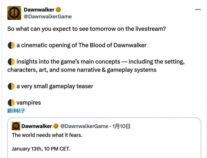 由前《巫师3》核心团队成立的Rebel Wolves(反叛之狼)工作室推出的首个3A动作RPG游戏《The Blood of Dawnwalker》,即将于1月14日早晨5点通过直播正式公开。今日,游戏官推发布了这次直播玩家可以期待的内容。