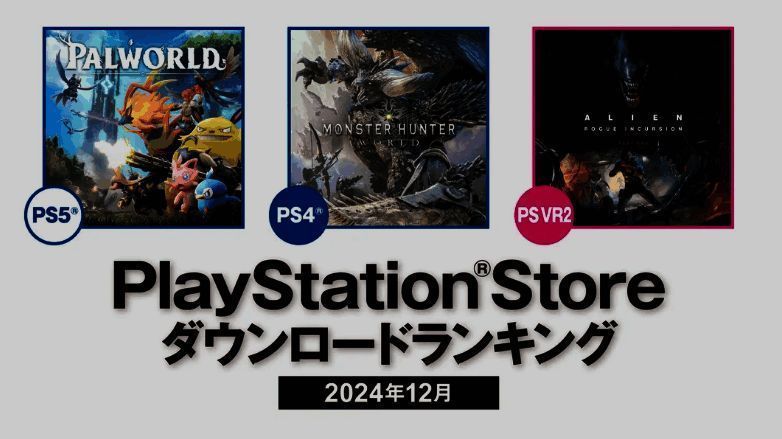 PS商店日前公布12月游戏的日本地区下载排行,《幻兽帕鲁》登顶PS5平台,而经典游戏《怪物猎人:世界》登顶PS4平台,PSVR2最受欢迎游戏则是《Alien: Rogue Incursion》。