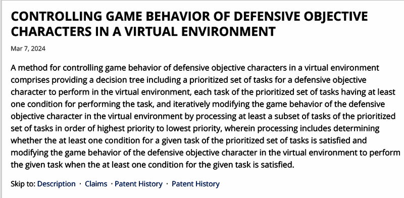 2024 年 9 月 Game Post 报道了一个 Bungie 提交的新专利,该专利内容涉及了“在虚拟环境中控制防御性目标角色的游戏行为”。专利指出,这种机制已被用于 MOBA 和塔防游戏游类型。之前,Bungie还申请了一项关于手持设备/手机的触屏控制专利,这是在其推出《命运:崛起》手游之前申请的。