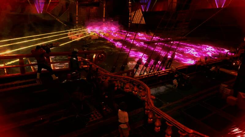海战的关键要素是安装、升级和开火大炮,这恰恰是《如龙》这个IP古怪本性的闪光点,为玩家提供了各种大炮选择,比如能量大炮,激光大炮,甚至还有鲨鱼大炮。