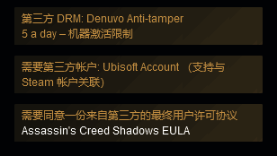 最新一次延期将游戏的发售日推迟至了 2025 年 3 月 20 日。目前游戏在 Steam 上的售价仍未公布,确认将支持简体中文(无中文配音),且包含 D 加密,并需要绑定育碧账号。