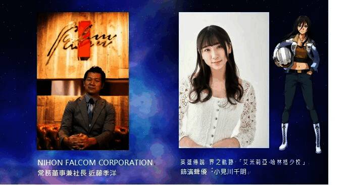 玩家熟悉的NIHON FALCOM 社长近藤先生,今年将再次造访 2025 年台北国际电玩展,除了与玩家一同分享「轨迹」系列 20 年以来的点点滴滴,更预计带来 「轨迹系列」的最新情报, 以及玩家最期待的游戏开发秘辛。而「英雄传说 界之轨迹」中饰演「艾米莉亚‧哈林格少校」声优的小见川千明小姐也将为玩家带来录制「英雄传说 界之轨迹」时的种种趣谈!