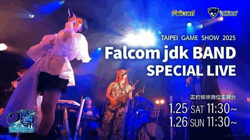 本次特别为了2025 台北国际电玩展来台演出 NIHON FALCOM 的旗下专属乐团 jdk BAND,1 月25 日、26 日将于上午在云豹娱乐活动舞台热力开唱,本次特别针对电玩展规划一系列曲单,而且两日表演曲目完全不同,想要一次听好听满的玩家,记得准时到场参加。