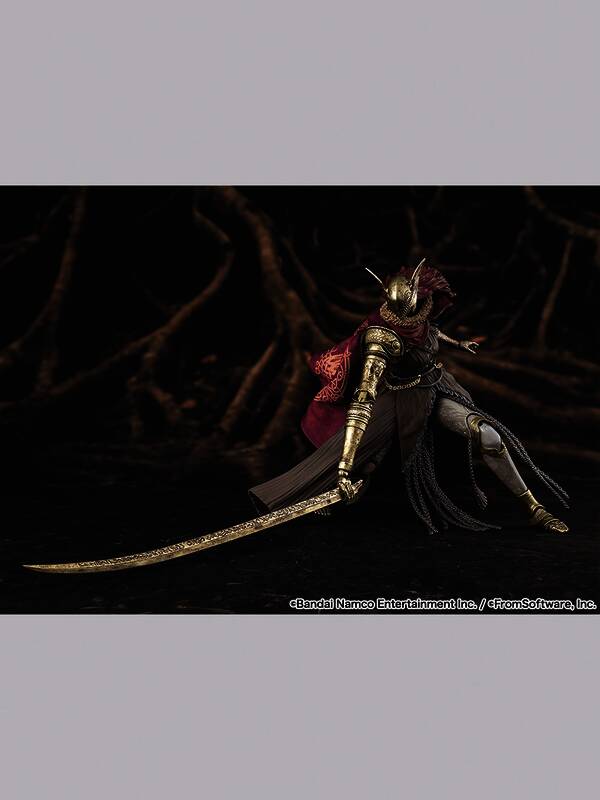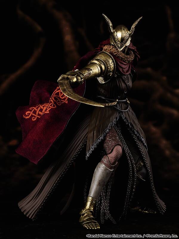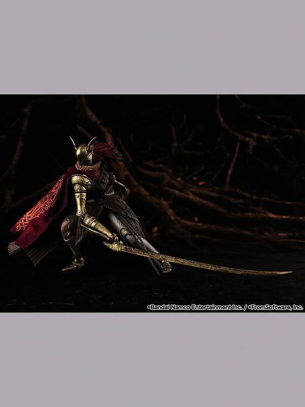 这款可动人偶是《艾尔登法环》SHF系列的第二款,部件有多种选择,包括一把“义肢剑”。斗篷内置电线,可重现多个游戏场景。