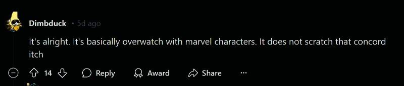 《星鸣特攻》粉丝们对《漫威争锋》的成功非常嫉妒,他们认为《星鸣特攻》有更好的游戏性,而《漫威争锋》根本不好玩。
