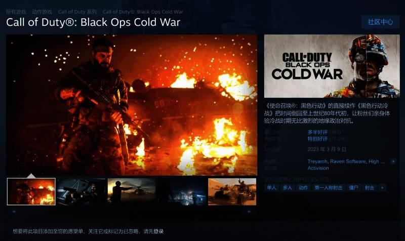 《黑色行动:冷战》(2020):“Treyarch和Raven Software工作室由数百名创意人员组成的团队,花费多年时间打造这款游戏,最终在整个生命周期中投入超过7亿美元的开发成本。”(销量3000万份)