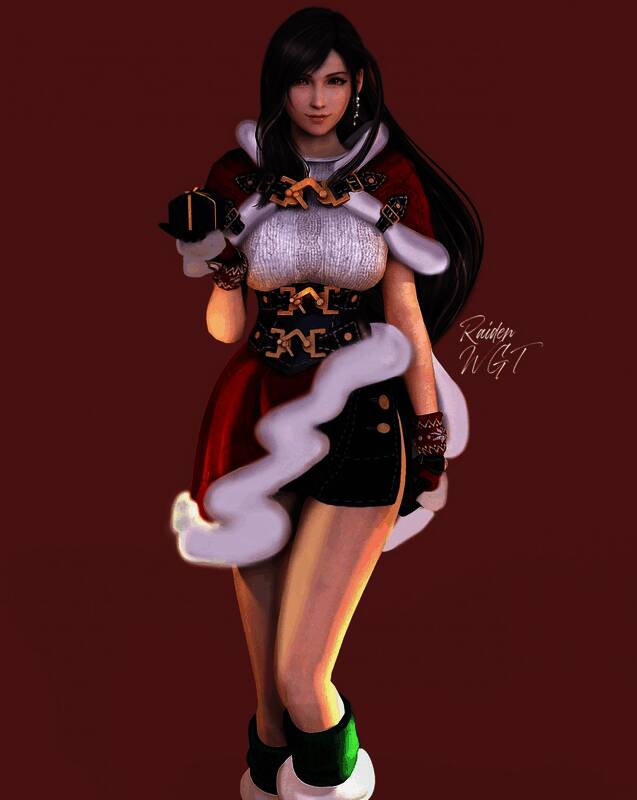 近日游戏博主RaidenWgt和drayqin在推特上,分享了自制的《最终幻想7》蒂法3D新年贺图。蒂法身穿圣诞装,尽显完美好身材。一起来欣赏下吧!