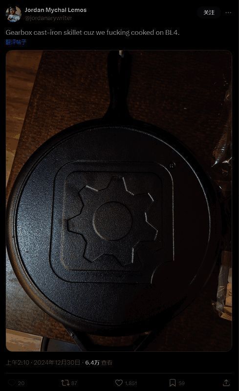 工作室编剧 Jordan Mychal Lemos 在社交媒体上分享了这个消息。他此前曾参与过制作《对马岛之魂》、《刺客信条:奥德赛》等作品。他还分享了这个定制的生铁锅照片,确认这是公司送的圣诞礼物。