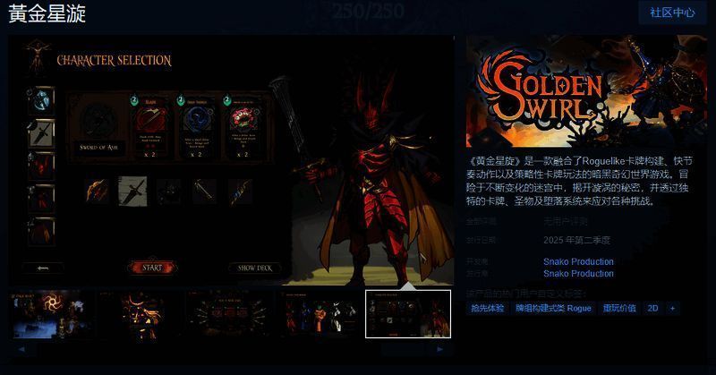 今日(1月4日),融合了Roguelike卡牌构建、快节奏动作以及策略性卡牌玩法的暗黑奇幻世界游戏《黄金星旋》Steam页面公布,该作将于2025年第二季度发售,感兴趣的玩家可以点击此处进入商店页面。