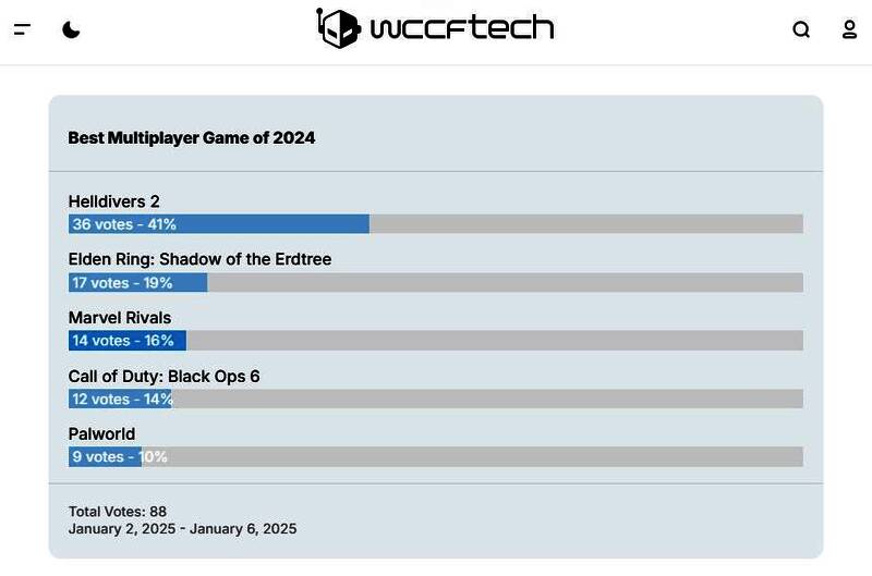虽然已经跨越到2025年,但仍有部分媒体还在进行2024年的年终盘点,近日外媒“Wccftech”就开启了2024最佳多人游戏的投票评选活动(并非唯一奖项,部分已结束投票)。