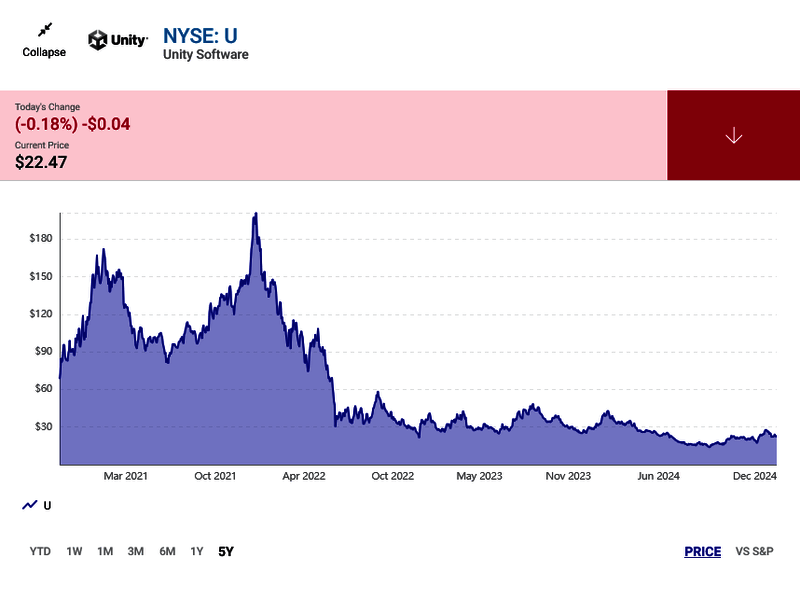 据报道,游戏引擎开发商 Unity 在过去一年里大幅下降。