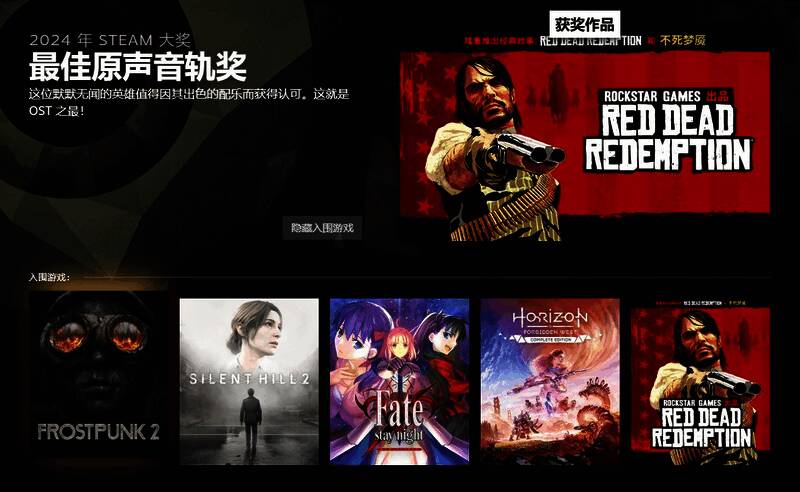 2024年Steam大奖获奖游戏公开,《黑神话:悟空》成最大赢家,一举囊括“年度最佳游戏”、“纵使手残仍大爱奖”和“杰出剧情游戏奖”等三项大奖。《潜行者2》成为最大输家,获得三项大奖提名,但未斩获一奖。