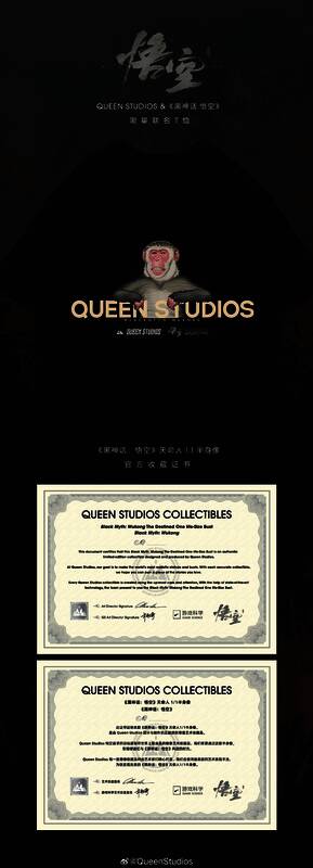 国产雕像厂商QueenStudios宣布,到12月30日预购订单截止,《黑神话:悟空》天命人1/1半身像全球限量体数为780体。该雕像售价33,800元,高100cm x 宽92cm x 纵深70cm,采用金丝羊毛、仿真义眼、铂金硅胶、树脂等材料制作,预计2025年第四季度交货,每一体半身像都拥有独一无二的限量编号证书,且由游戏科学艺术总监杨奇与Queen Studios艺术总监Oliver Liu签名。