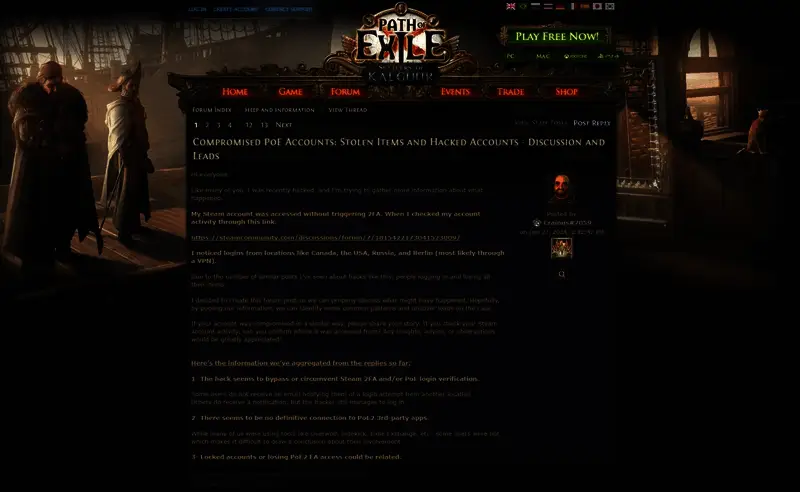 此外报道中提到黑客似乎毫不费力就绕过了Steam 2FA。一些受影响的用户表示,他们收到了有人试图登录其帐户的电子邮件,但不知何故,他们仍然设法绕过了Steam 2FA。如果这么容易做到,这意味着Steam可能会遇到比《流放之路2》目前面临的更大问题。