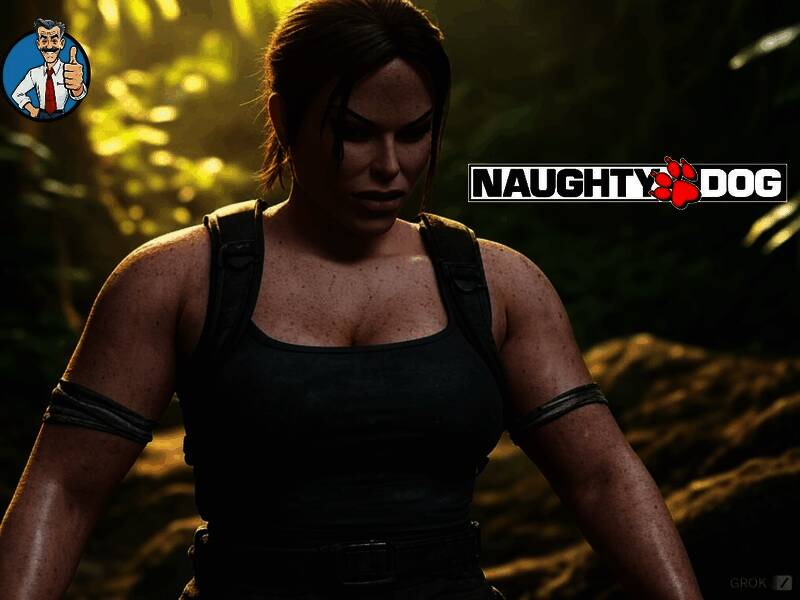 对于顽皮狗不敢承认女性之美,有粉丝使用马斯克的AI Grok生成了一张顽皮狗版本的《古墓丽影》劳拉,调侃顽皮狗的扭曲审美。