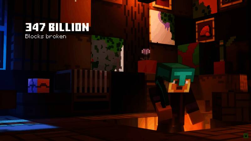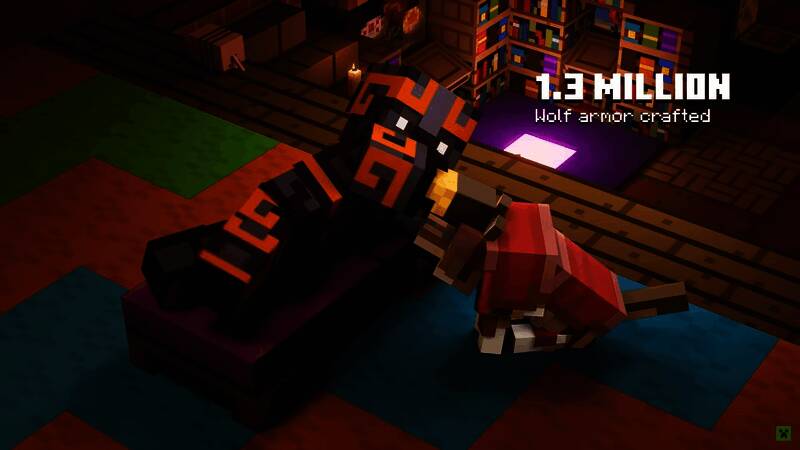 从视频中可以看到一些有趣的数据,例如在2024年期间,《我的世界》玩家共在游戏中破坏了超过3470亿个方块;而在2024年4月推出新生物犰狳的“Armored Paws”更新后,玩家已经在游戏中获得了超过4400万个犰狳鳞片;此外《我的世界》玩家在2024年期间也制造了超过130万套的狼盔甲,并在制作盔甲时驯服了超过1亿头狼。