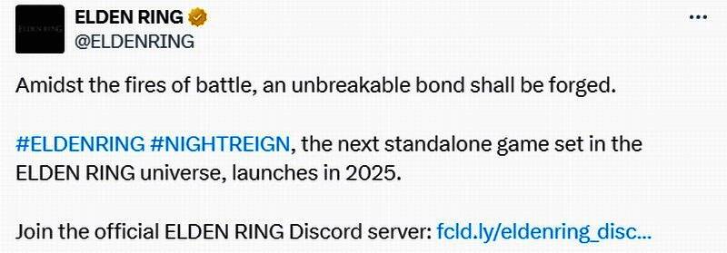 今日(12月27日)《艾尔登法环:黑夜君临》官方在推特上分享了新视觉图,并配文:“在战火中,建立起牢不可破的友谊。”