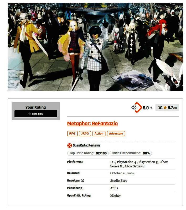 1.《暗喻幻想:ReFantazio》