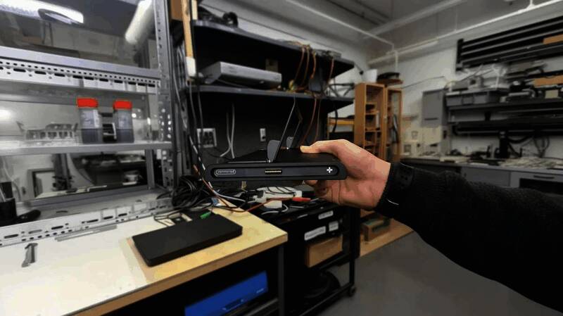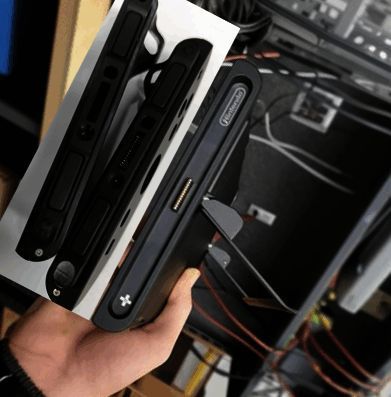 这张也是信息量最大的一张,展示的是Switch 2后边的U型支架和侧边Joy-Con手柄的连接处,连接处的最中间有一排铜触点,共13个,这与此前泄露的Switch 2 Joy-Con手柄上的插口相符合,并且这个连接处没有像Switch上的滑轨,符合Switch 2 Joy-Con手柄采用磁吸连接的传闻。