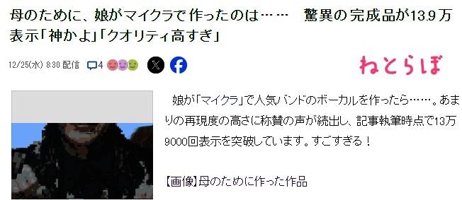 近日一位女玩家“猫之华”分享了自己的惊喜,是女儿居然在《我的世界》为自己打造了最喜爱的偶像巨型雕塑,网友惊叹实在太像了。