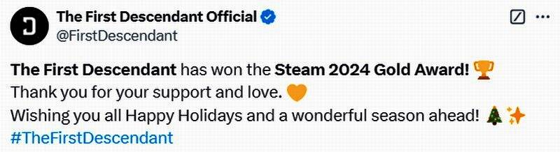 近日《第一后裔》官方在推特上发文称,本作荣获2024年Steam金奖。官方表示:“感谢大家的支持与厚爱,祝大家节日快乐,并度过美好的假期。”