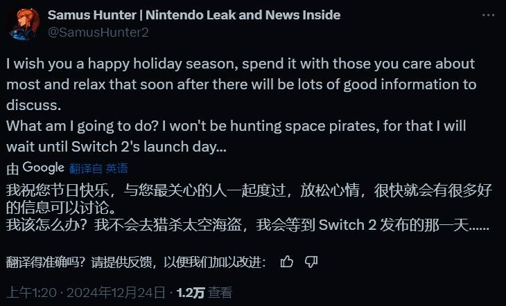 传闻来自一位名为 Samus Hunter 的任天堂内部人士,他最近的爆料记录很不错。在推特上的一篇帖子中,Samus Hunter 暗示《银河战士 Prime 4》将成为 Switch 2 的首发游戏。关于这次发布的更多细节没有透露,但他也声称《银河战士 Prime 2:回声》的重制版也将登陆初代 Switch,以迎接《银河战士 Prime 4》的到来。