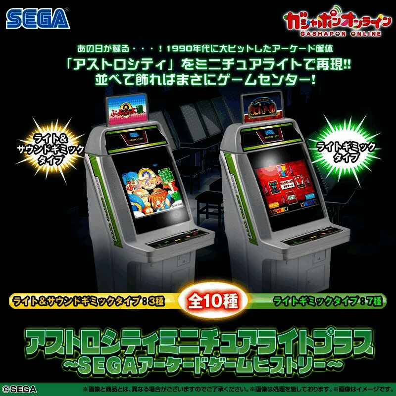 ·新款扭蛋版Astro City系列街机共计10钟,分别有各自匹配的游戏特征,整体尺寸凝缩至6cm,内设LED灯光和声音,同样的趣味十足,收藏价值更高。