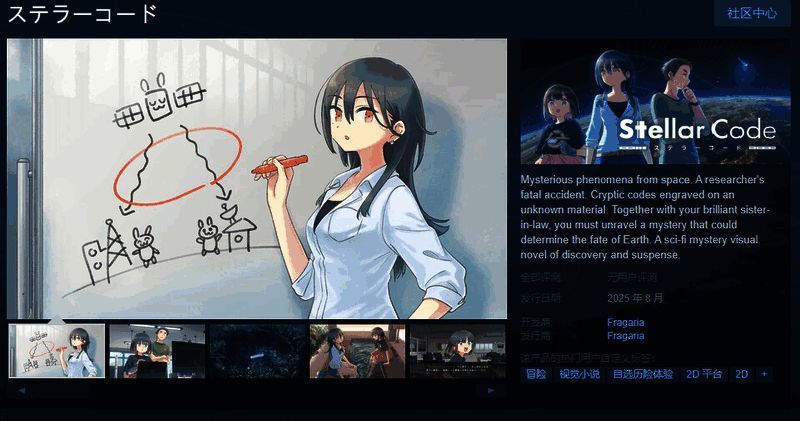 今日(12月24日),科幻悬疑视觉小说《Stellar Code》Steam页面开放,2025年8月发售,游戏暂不支持中文,感兴趣的玩家可以点击此处进入商店页面。