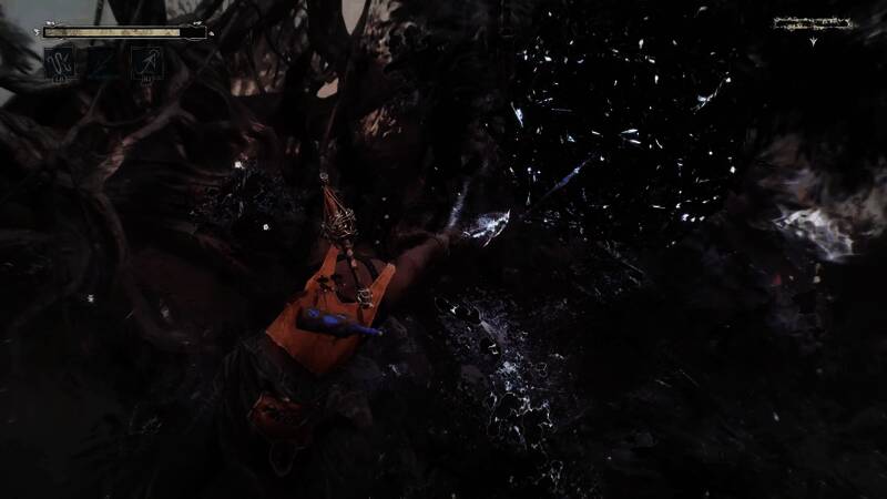 在Boss战中,我们看到女主Hazel海泽尔面对一个 “鬼怪”。“鬼怪 ”是一团扭曲的负能量,因周围世界的创伤而形成,也是《午夜之南》中最常见的敌人,有多种原型。她利用自己的钩子和纺锤削弱了鬼怪的负能量,并通过“解开”负能量结束了战斗,使该区域(和她自己)恢复了原有的光彩。