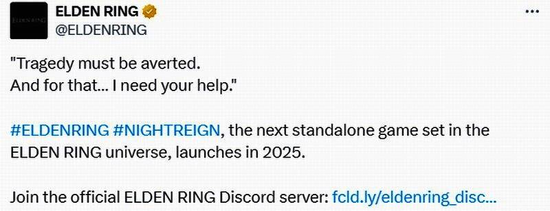 近日《艾尔登法环:黑夜君临》官方在推特上分享了新视觉图,并配文:“必须避免悲剧的发生。为此……我需要你的帮助。”