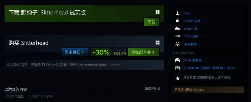 试玩过后,对该作感兴趣的玩家可以购买游戏。目前《野狗子》在Steam,Epic和PlayStation平台开启30%促销。Steam国区原价198元,现价138.6元,为新史低。